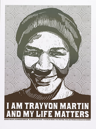 Left: I Am Trayvon Martin, Dignidad Rebelde; Santiago Armengod (Mazatl), Silkscreen, 2013, Oakland, CA, 42693