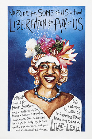 Left: No Pride for Some of Us without Liberation for All of Us [Marsha P. Johnson], Micah Bazant, Digital Print, 2013, USA, 56744