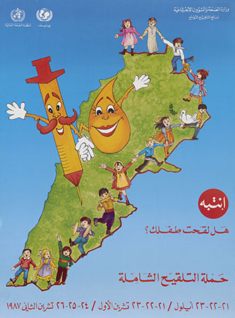 Right: Attention: Have you vaccinated your child?, UNICEF; Family Health Agency; Ministry of Health and Social Affairs, Offset, 1987, Lebanon, 61902