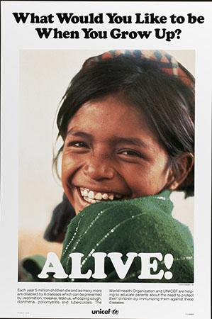 Left: What Would You Like to be When You Grow Up? Alive!, United Nations Children's Fund, Photo: John Henebry, Jr., Offset, Circa 1980s, United States, 49409