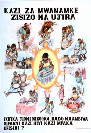 Right: Kazi Za Mwanamke Zisizo Na Ujira, Artist Unknown, Offset, Circa 1980s, Arusha, Tanzania