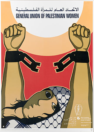 Left: General Union of Palestinian Women, Jihad Mansour (Marc Rudin); General Union of Palestinian Women; Liberation Graphics; World Conference of the United Nations Decade for Women, Offset, 1986, Denmark, 4062