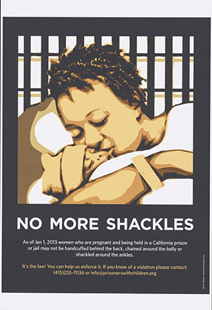 Left: No More Shackles!, Micah Bazant; Legal Services for Prisoners with Children, Digital Print, 2013, Berkeley, CA, 41071