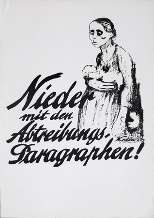 Left: Nieder mit den abtreibungs-paragraphen / Down with the Abortion Law, Käthe Kollwitz, Offset reproduction of lithograph original, 1924, Germany